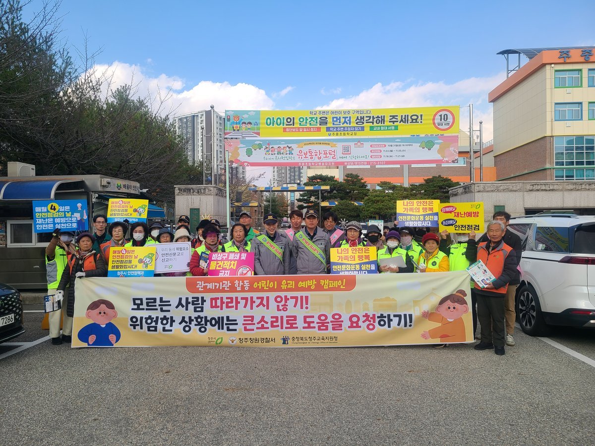 [충청뉴스큐] 청주시는 20일 청원구 주중초등학교 일원에서 어린이 등하굣길 안전 확보를 위한 ‘어린이 약취·유인 예방 캠페인’을 실시했다.
