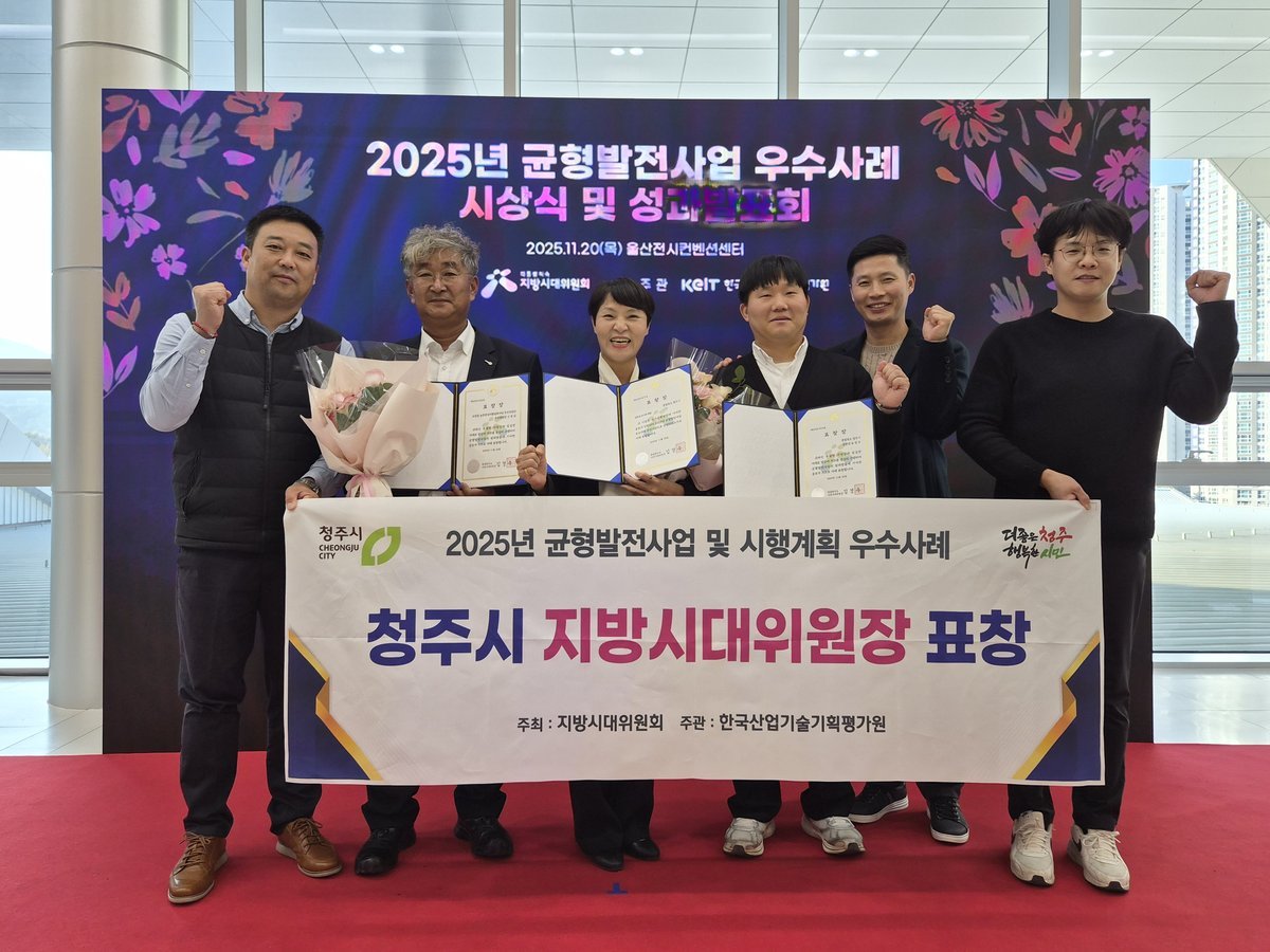 청주시는 20일 울산전시컨벤션센터에서 개최된 ‘2025년 균형발전사업 및 시행계획 우수사례 시상식’에서 지방시대위원장 기관 표창을 수상했다.