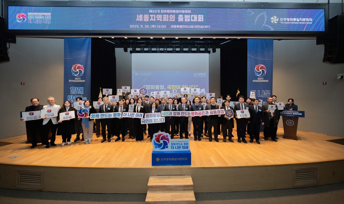 [충청뉴스큐] 민주평화통일자문회의 세종지역회의은 ‘제22기 민주평화통일자문회의 세종지역회의 출범대회’를 11월 20일 세종시청 여민실에서 개최했다출범대회는 1부 개회식에 이어 진행된 2부 정기회의는 △기관소개와 자문위원 역할 안내, △임원인준, △2025년 주요사업 안건심의 순으로 진행됐다.
