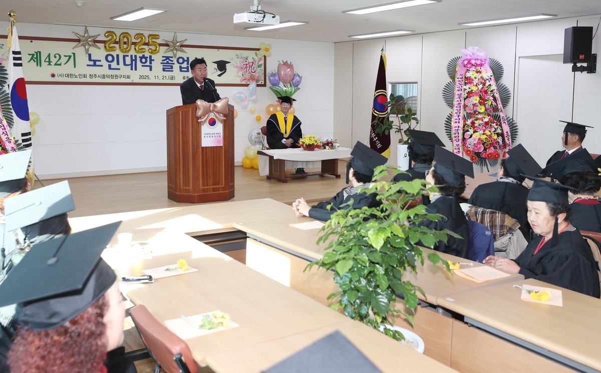 이범석 시장은 축사를 통해 “배움에 대한 열정으로 학업을 마치신 졸업생 모두에게 깊은 존경과 축하를 드린다”며 “앞으로도 어르신들이 활기차고 건강한 노년을 보내실 수 있도록 청주시가 적극 지원하겠다”고 밝혔다.