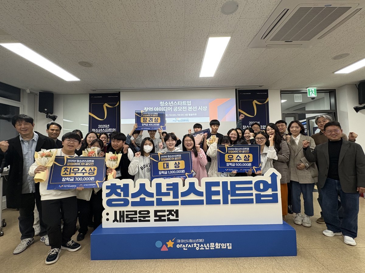 [충청뉴스큐] 아산시청소년재단 아산시청소년문화의집은 22일 지역 청소년 창업가 발굴과 진로 역량 강화를 위해 개최한 ‘2025년 아산 청소년 창업아이디어 경진대회’를 성황리에 마쳤다고 밝혔다.
