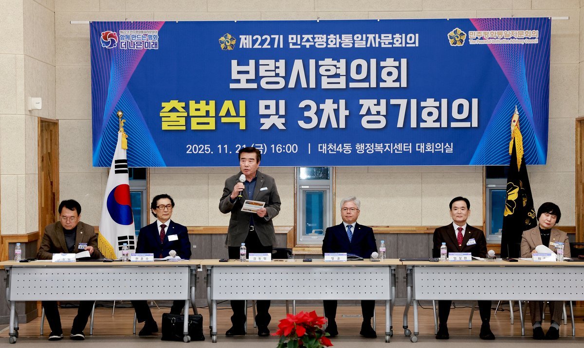 [충청뉴스큐] 민주평화통일자문회의 보령시협의회는 지난 21일 대천4동 행정복지센터 대회의실에서 김동일 보령시장과 정윤 민주평통 충남부의장, 자문위원 등 60명이 참석한 가운데 ‘제22기 출범식 및 2025년 3차 정기회의’를 개최했다.