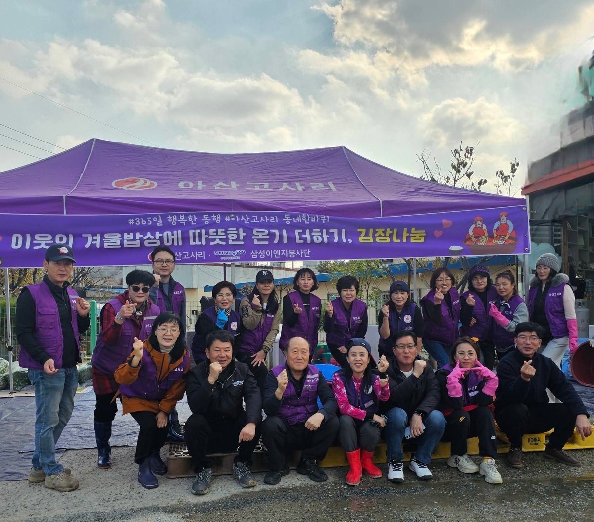 이번 행사는 겨울철 어려움을 겪는 취약계층의 식생활을 돕기 위한 것으로, 아산고사리 회원 60여 명과 삼성이엔지 봉사단, 강한용 배방읍장이 참여해 온정을 더했다.