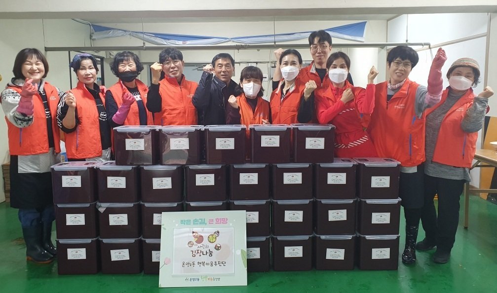 [충청뉴스큐] 아산시 온양2동 행복키움추진단은 지난 25일 온양2동 행정복지센터에서 ‘사랑의 김장 나눔 행사’를 개최하고, 직접 담근 김장김치와 수육을 관내 저소득 취약계층 30가정에 전달했다.
