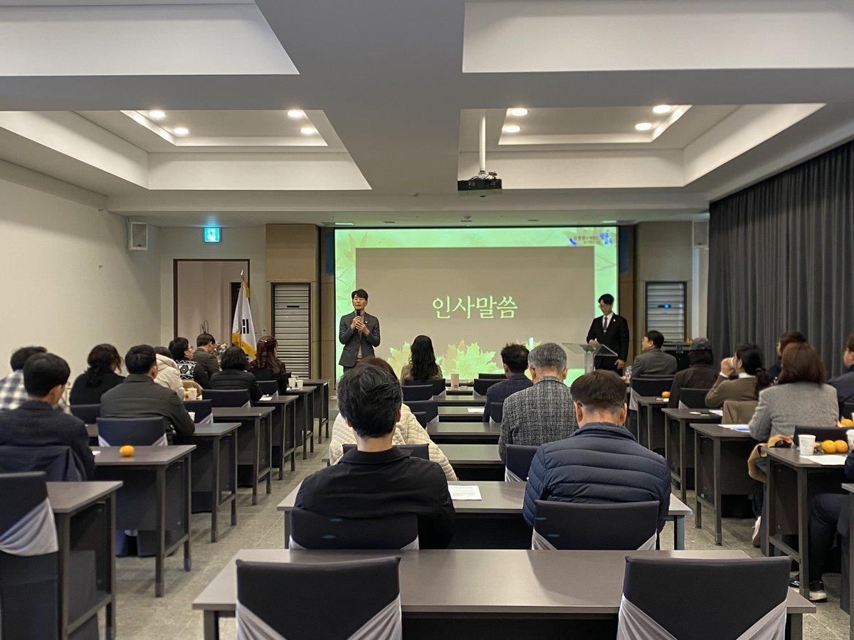 서부교육지원청이 27일 담양 일대에서 진행한 학교폭력대책심의위원 역량 강화 연수에서 심의위원들이 내년도 도입될 관계회복숙려제에 관련된 강의를 듣고 있다.