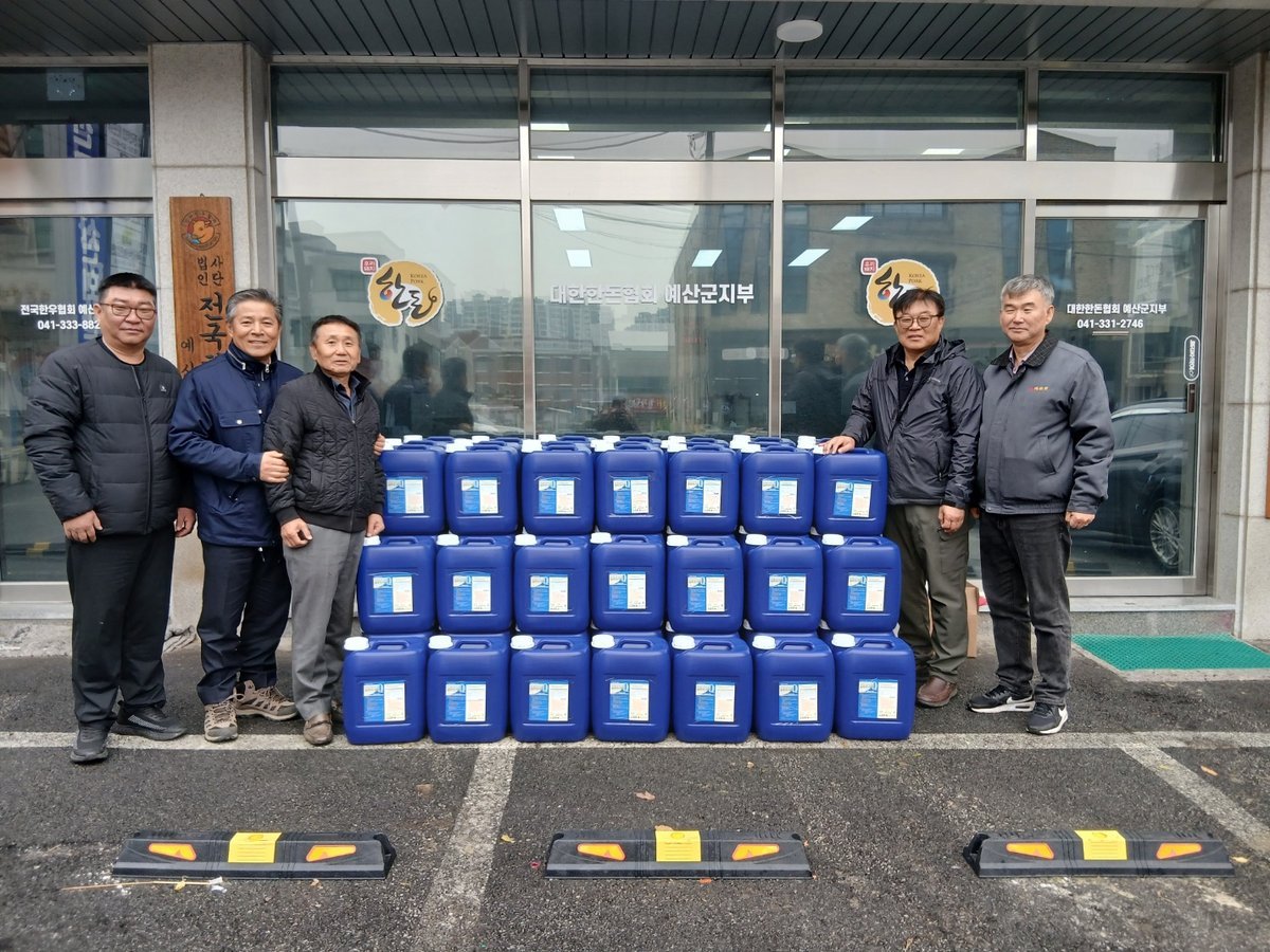 [충청뉴스큐] 예산군은 ㈜한동이 예산군축산회관에서 한돈협회 예산군지부에 아프리카돼지열병 차단을 위한 소독약품을 기탁했다고 밝혔다.