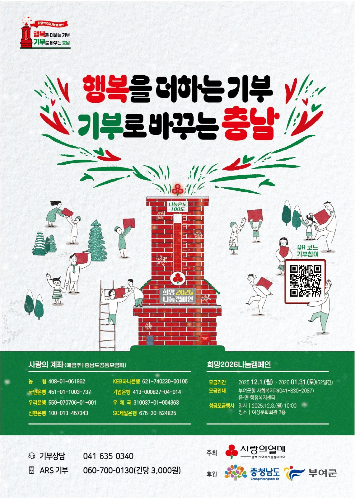 [충청뉴스큐] 부여군은 충남사회복지공동모금회와 함께 내달 1일부터 2026년 1월 31일까지 62일간 ‘희망 2026 나눔 캠페인’을 실시한다고 밝혔다.