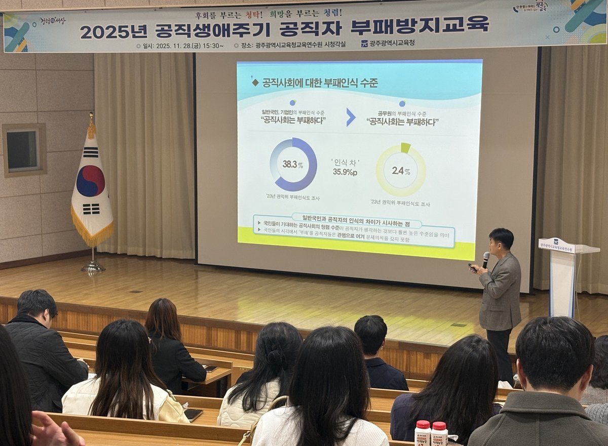 [충청뉴스큐] 광주시교육청은 28일 광주시교육청교육연수원 시청각실에서 ‘공직생애주기 공직자 부패방지교육’을 실시했다.