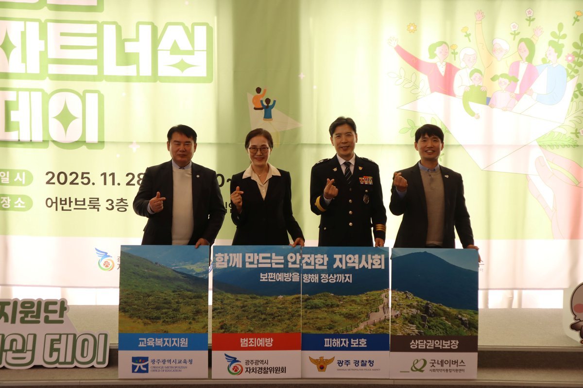 [충청뉴스큐] 광주광역시자치경찰위원회는 광주경찰청·광주시교육청·굿네이버스 사회적약자통합지원센터와 함께 28일 복합문화공간 어반브룩에서 ‘제3회 희망틔움 통합지원단 더 좋은 파트너십 데이’를 개최했다.