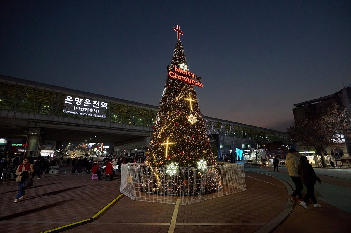 [충청뉴스큐] 아산시는 크리스마스 시즌을 맞아 희망의 빛을 전하고자 아산시기독교연합회 주관으로 30일 온양온천역 광장에서 ‘2025 크리스마스트리 점등식’을 개최했다.
