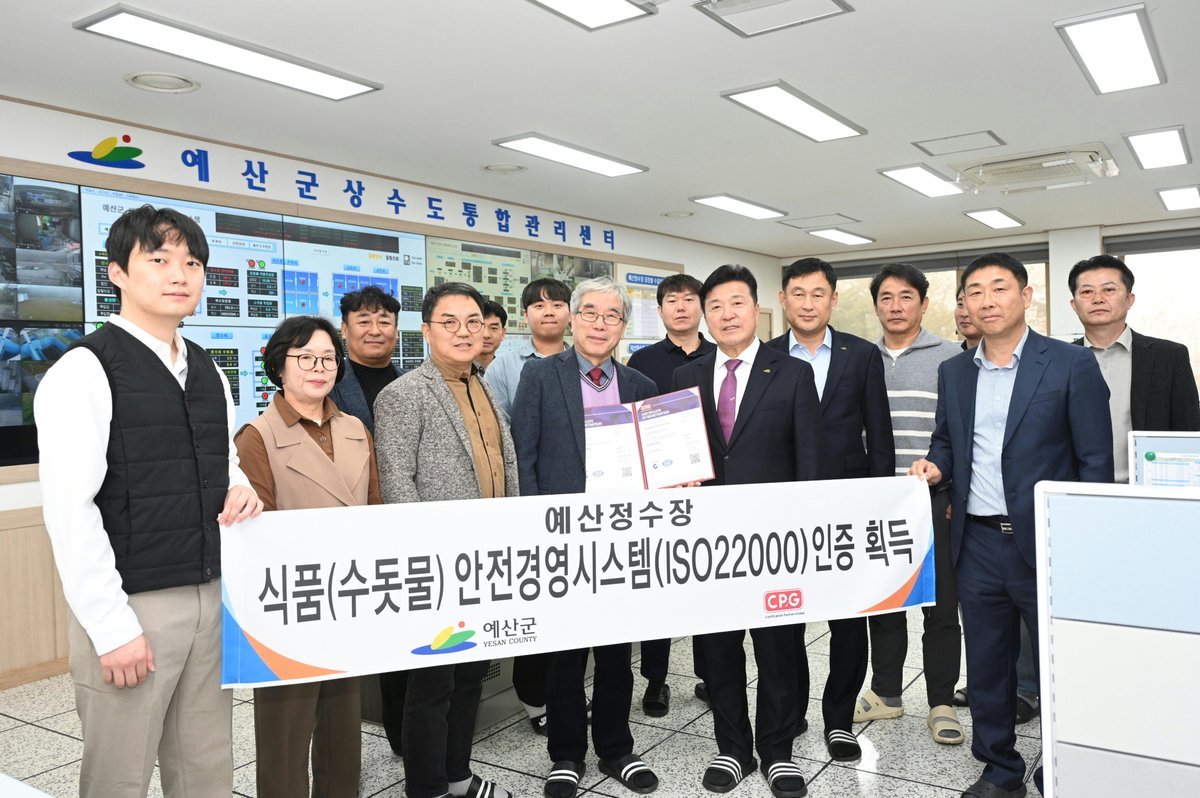 예산정수장은 하루 평균 1만6000톤의 수돗물을 생산해 예산읍 및 인근 지역에 공급하고 있으며, 이번 인증을 계기로 국내 지자체 상수도 분야에서 새로운 안전경영 모델로 주목받고 있다.