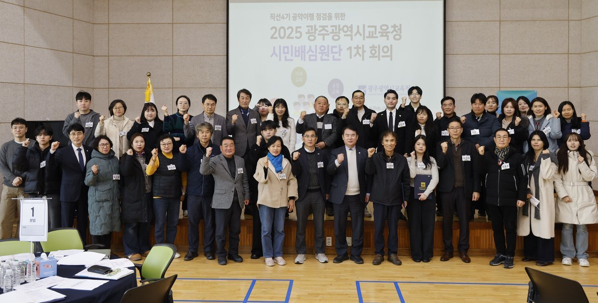 [충청뉴스큐] 광주시교육청은 3일 광주시교육청교육연수원 보람관에서 공약평가시민배심원단 50명을 위촉하고 1차 회의를 진행했다.
