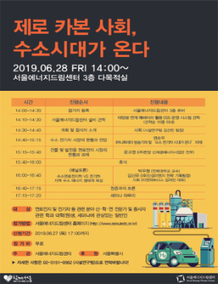 [충청뉴스큐] 서울에너지드림센터는 오는 28일 오후 2시 상암동 평화의 공원 내 위치한 센터 다목적실에서 “제로 카본 사회, 수소시대가 온다”를 주제로 상반기 정기 세미나를 개최한다고 밝혔다.