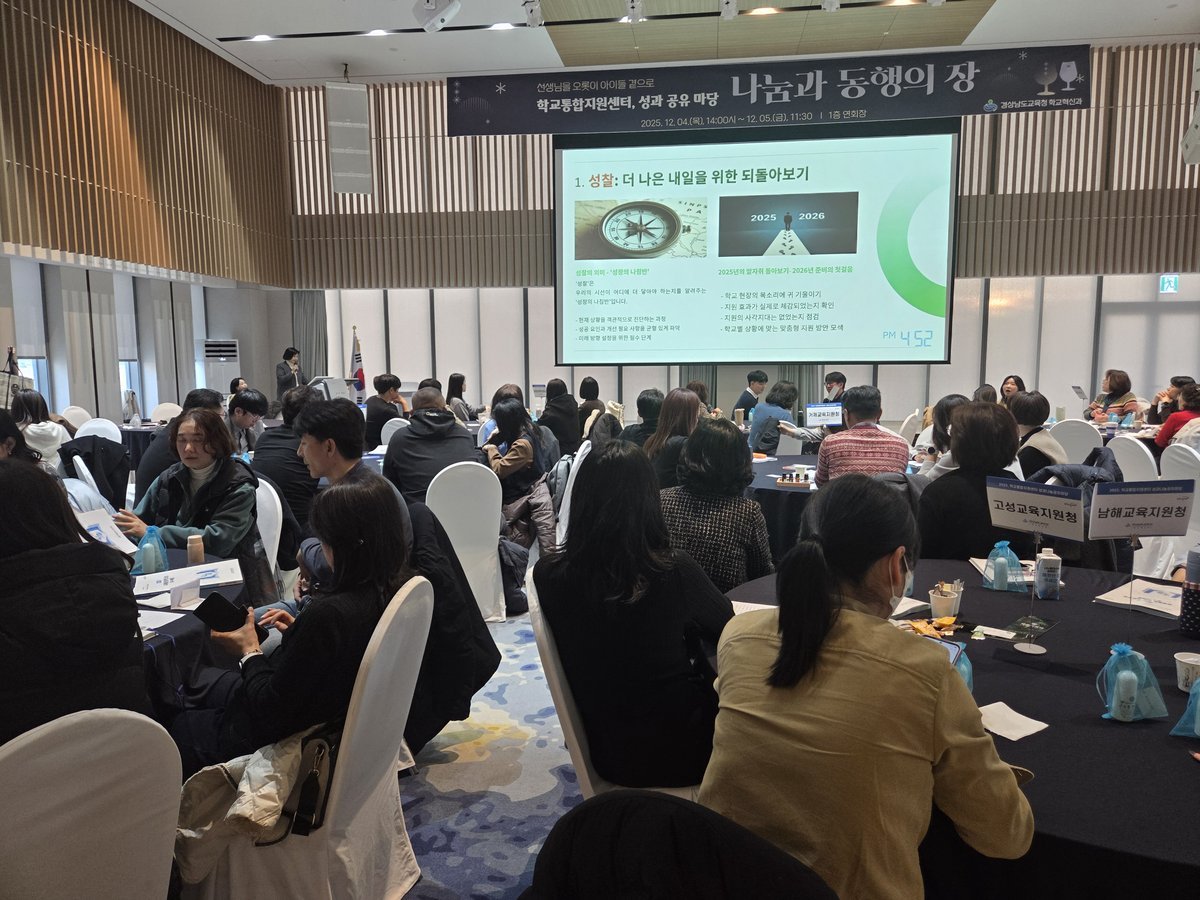 [충청뉴스큐] 경상남도교육청은 4~5일 이틀간 ‘학교통합지원센터, 나눔과 동행의 장’을 주제로 2025년 학교통합지원센터 운영 성과를 공유하고 2026년의 새로운 발전 방향을 모색하는 성과 공유마당을 한화리조트 거제 벨버디어에서 개최했다.