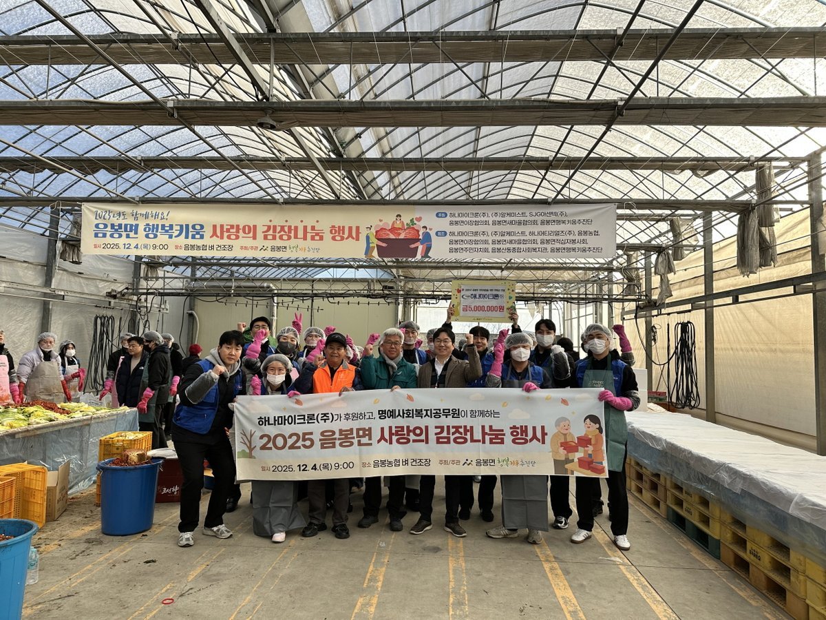 [충청뉴스큐] 하나마이크론㈜은 4일 아산시 음봉면 행복키움추진단의 ‘2025년 함께해요 행복키움 사랑의 김장 나눔 행사’에 후원금 500만 원을 전달했다.