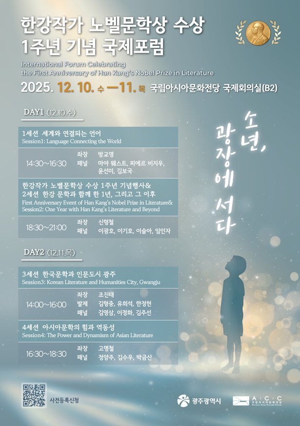 광주광역시는 오는 10~11일 국립아시아문화전당 국제회의실에서 ‘한강작가 노벨문학상 수상 1주년 국제포럼’을 개최한다.
