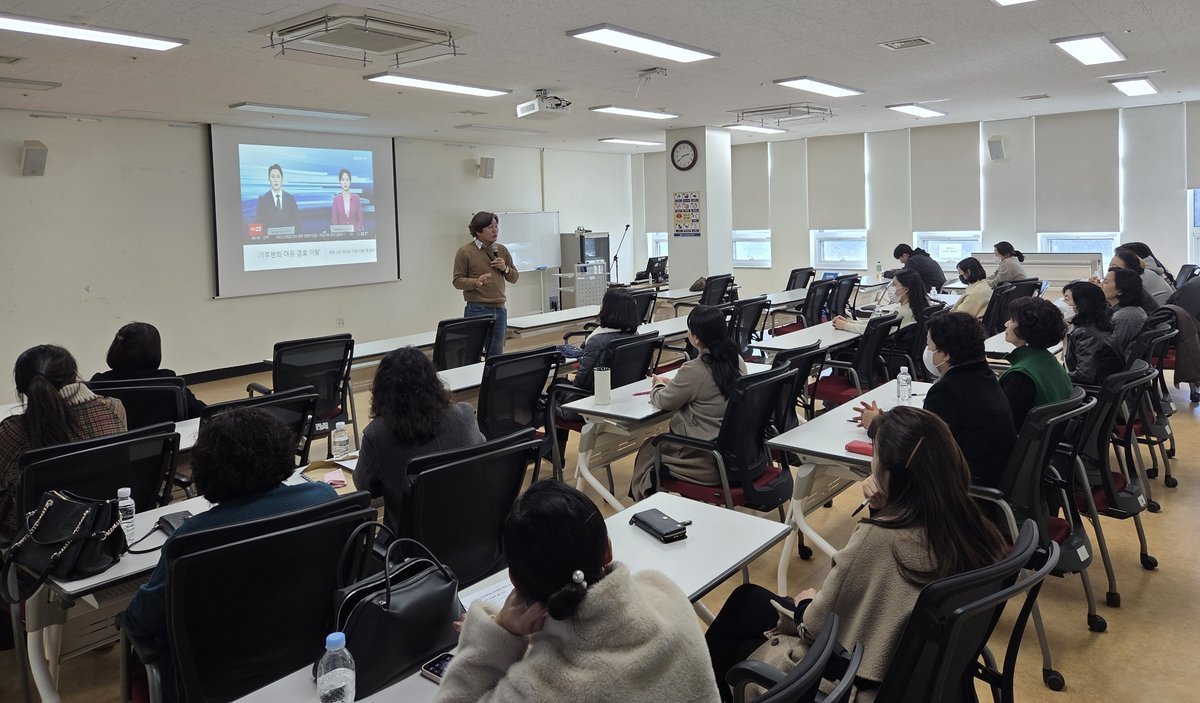 광주시교육청이 8일 광주시교육청학생독립운동기념회관 평생학습실에서 진행한 ‘학교안전책임관 역량강화 연수’에서 송창영 광주대 교수가 참가자들에게 재난 안전에 대한 강의를 하고 있다.