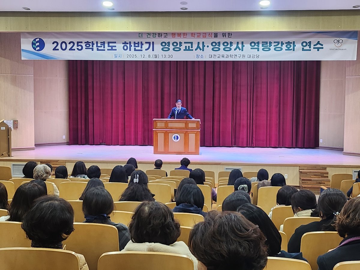 [충청뉴스큐] 대전시교육청은 12월 8일 대전교육과학연구원에서 관내 초·중·고·특수·각종학교의 영양교사와 영양사 350여 명을 대상으로‘2025학년도 하반기 역량강화 연수’를 실시했다고 밝혔다.