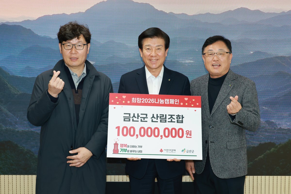 [충청뉴스큐] 금산군산림조합은 지난 9일 금산군청을 방문해 2026 희망나눔캠페인 성금 1억 원을 기탁하며 지역사회 나눔 실천에 앞장섰다.