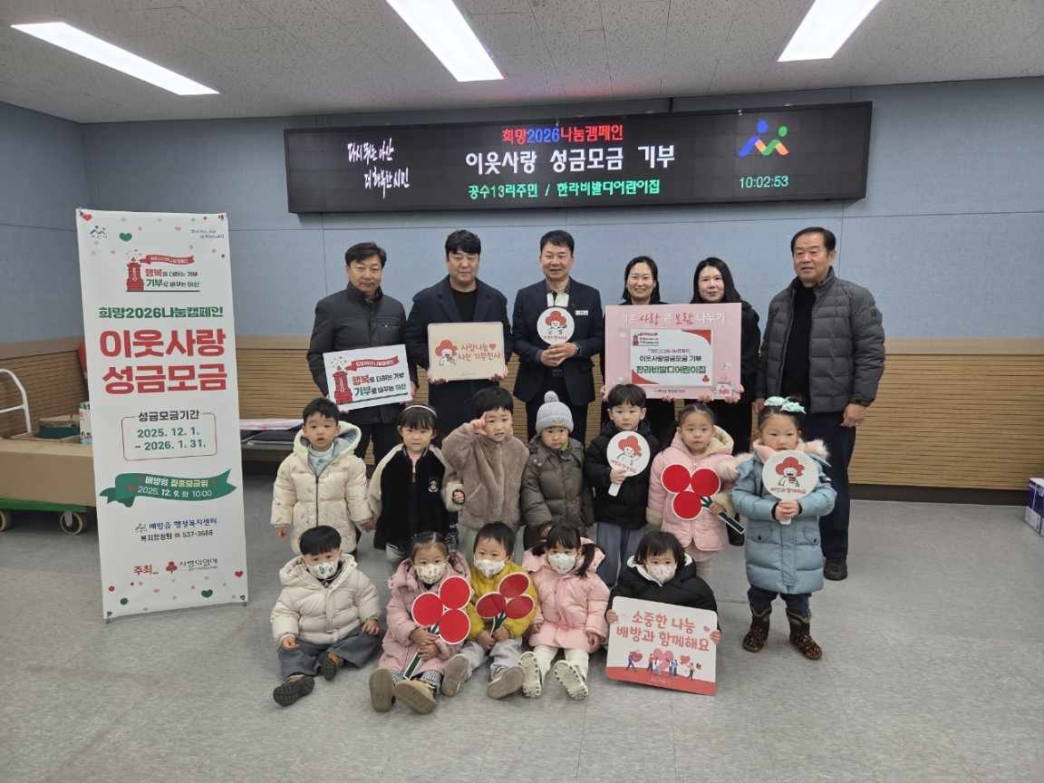 한편 「희망2026나눔캠페인」은 2025년 12월 1일부터 2026년 1월 31일까지 진행되는 연말연시 집중모금 행사로, 모금된 성금은 충남사회복지공동모금회를 통해 취약계층 지원과 지역 복지 향상을 위해 사용될 예정이다.