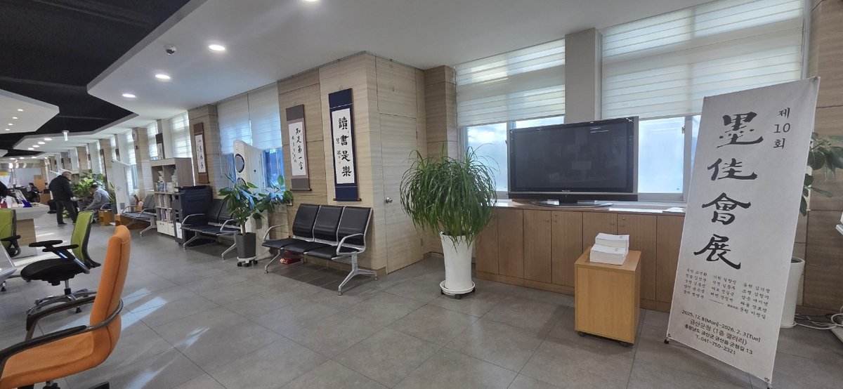 [충청뉴스큐] 금산군청 민원실 갤러리에서 진행 중인 제10회 묵가회전이 겨울철 군청을 찾는 주민들에게 잔잔한 문화적 울림을 전하고 있다.