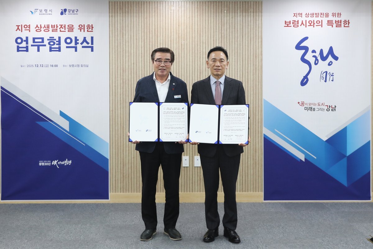 [충청뉴스큐] 보령시는 지난 12일 시청 민원동 회의실에서 서울특별시 강남구와 지역 상생발전을 위한 업무협약을 체결했다고 밝혔다.