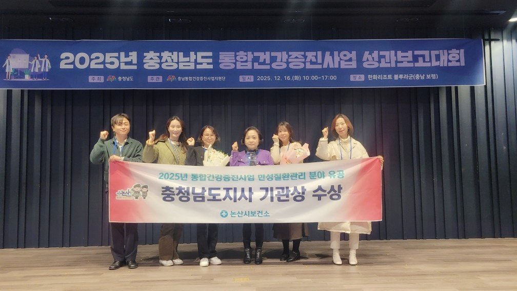 [충청뉴스큐] 논산시는 16일 충청남도가 주최한 ‘2025년 충청남도 통합건강증진사업 성과보고대회’에서 만성질환 관리 분야 유공기관으로 충청남도지사 표창을 수상했다고 밝혔다.