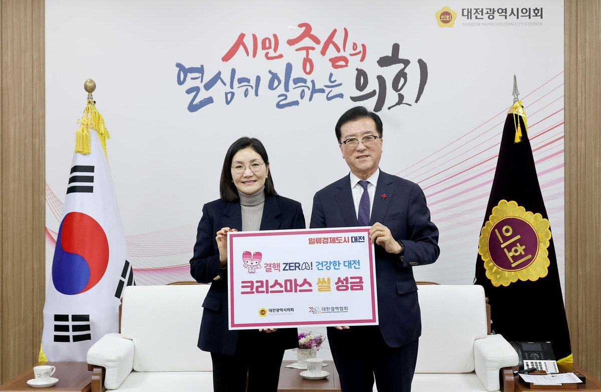 [충청뉴스큐] 대전시의회 조원휘 의장은 17일 시의회 접견실에서 크리스마스 씰 증정식을 갖고 결핵 예방과 감염병 대응을 위한 지역사회 지원 의지를 밝혔다.