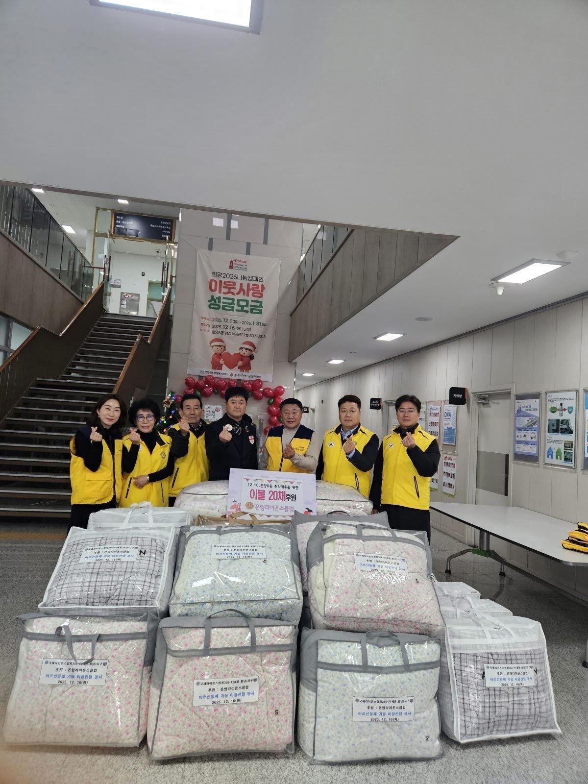 이순주 온양6동장은 “추운 날씨 속에서도 이웃을 먼저 생각해 주신 온양라이온스클럽에 깊이 감사드리며, 기탁해 주신 이불은 도움이 필요한 가정에 소중히 전달하겠다”고 말했다.