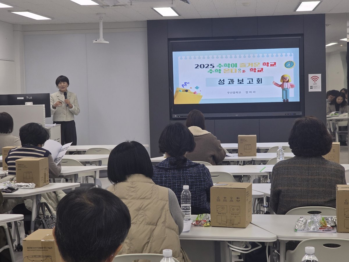 또 18일 본원 뉴턴실에서 수학교사 및 관리자 등이 참석한 가운데 ‘2025 수학이 즐거운 학교 ’수학온다학교‘성과보고회‘를 열고 이러한 내용을 안내했다. 이 자리에서는 ‘2025 대한민국 수학교육상’을 받은 우산중학교 장미라 교사가 ‘수학온다학교’운영을 통한 수업 혁신 사례를 발표하고, △학생 질문 중심 수업 △수학 독서 기반 탐구 △개별 맞춤형 피드백 등 실제 교실에서 적용한 교수학습 노하우를 공유했다.