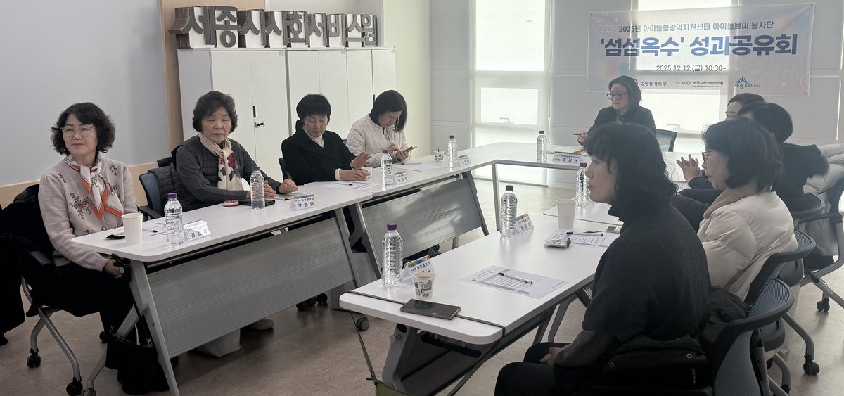 [충청뉴스큐] 세종시사회서비스원이 운영하는 세종시 아이돌봄광역지원센터는 지난 12일 세종시사회서비스원 회의실에서 ‘아이돌보미 봉사단 섬섬옥수 2기 성과공유회’를 개최했다.