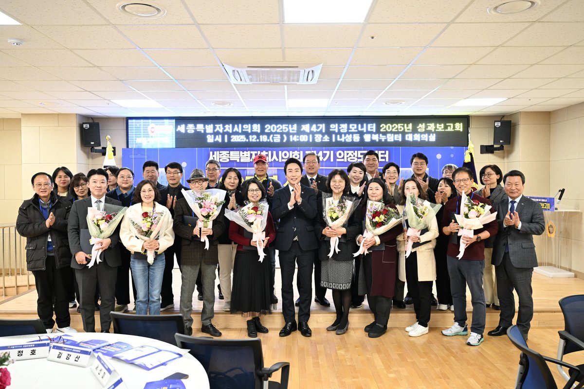 [충청뉴스큐] 세종특별자치시의회는 19일, 나성동 복합커뮤니티센터에서 ‘2025년 제4기 의정모니터 성과보고회’를 개최하고, 한 해 동안의 의정모니터 활동 성과를 공유했다.