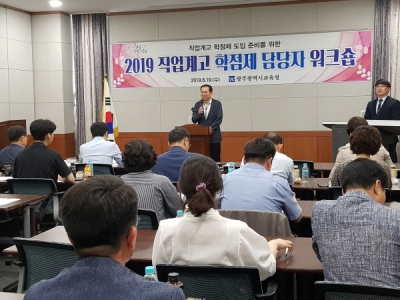 [충청뉴스큐] 광주광역시교육청은 지난 19일 관내 13개 직업계고등학교 교원, 교육부 관계자 등 50여 명이 참석한 가운데 광주과학기술진흥원에서 ‘2019년 직업계고 학점제 도입 준비를 위한 워크숍’을 개최했다.