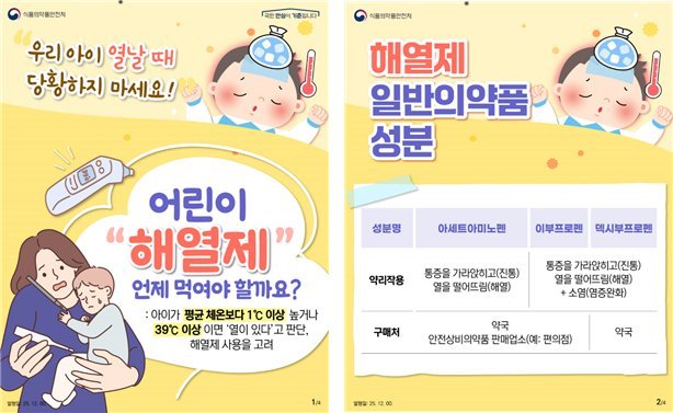 [충청뉴스큐] 식품의약품안전처 소속 식품의약품안전평가원은 겨울철에는 고열이 동반된 감기 및 독감 환자의 해열제 사용이 늘어남에 따라, 소아 해열제의 올바른 사용방법을 안내한다고 밝혔다.