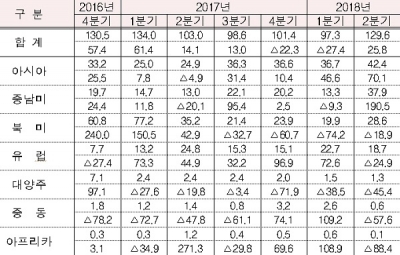 [충청뉴스Q] 6일 기획재정부가 발표한 ‘해외직접투자 동향’에 따르면 2018년 2분기 해외직접투자액은 129.6억 달러로, 전년 동기 대비 25.8% 증가,전기 대비 33.2% 증가했다.
