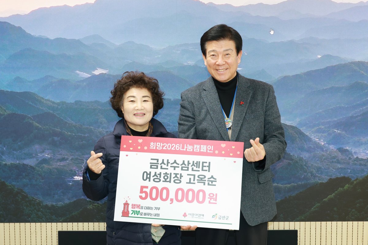 [충청뉴스큐] 금산수삼센터상인회는 지난 26일 금산군청을 방문해 희망2026 나눔캠페인 성금을 기탁했다.