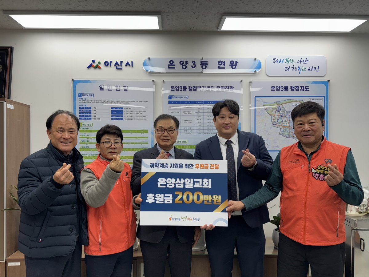 임승근·박충서 공동단장은 “어려운 여건 속에서도 이웃사랑을 실천해 주신 온양삼일교회에 깊이 감사드린다”며 “기탁해 주신 후원금은 도움이 필요한 가구에 소중히 전달하겠다”고 전했다.
