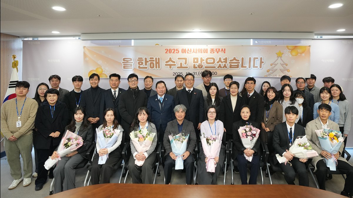 [충청뉴스큐] 아산시의회는 12월 31일 오전 11시 의회동 3층 다목적회의실에서 시의원과 의회사무국 직원들이 참석한 가운데 2025년도 종무식을 개최하고 한 해 의정활동을 마무리했다.