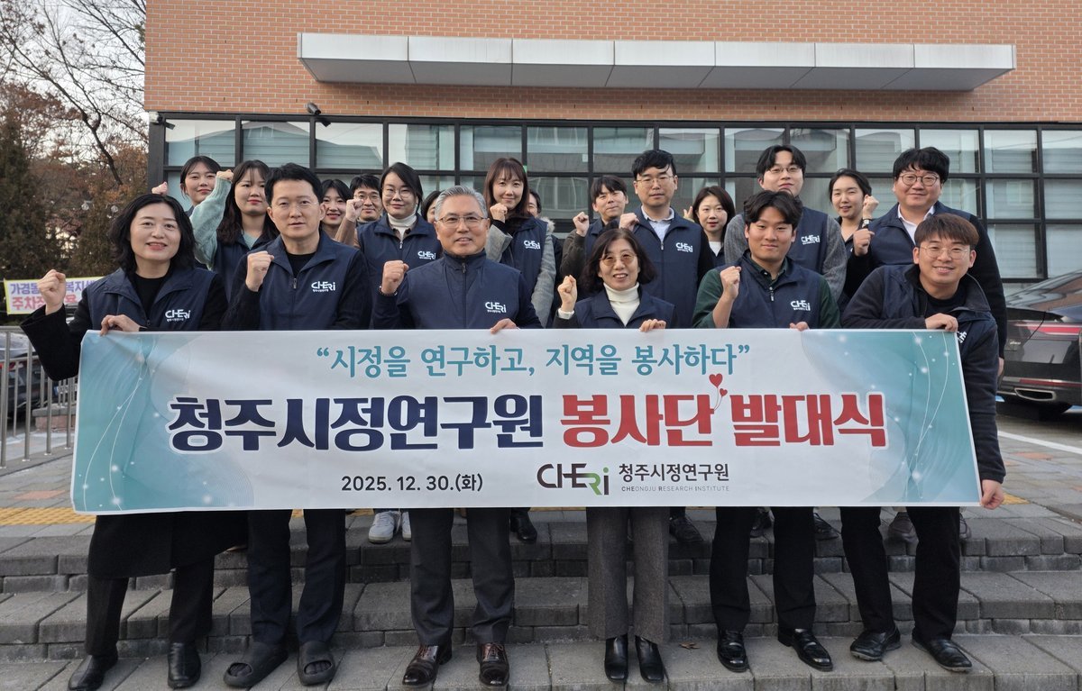 한편 청주시정연구원 봉사단은 다음 달 2일 새해 첫 봉사활동으로 연구원 일원 도로변 등 방치된 쓰레기를 수거하는 환경정화 활동을 진행할 예정이다.