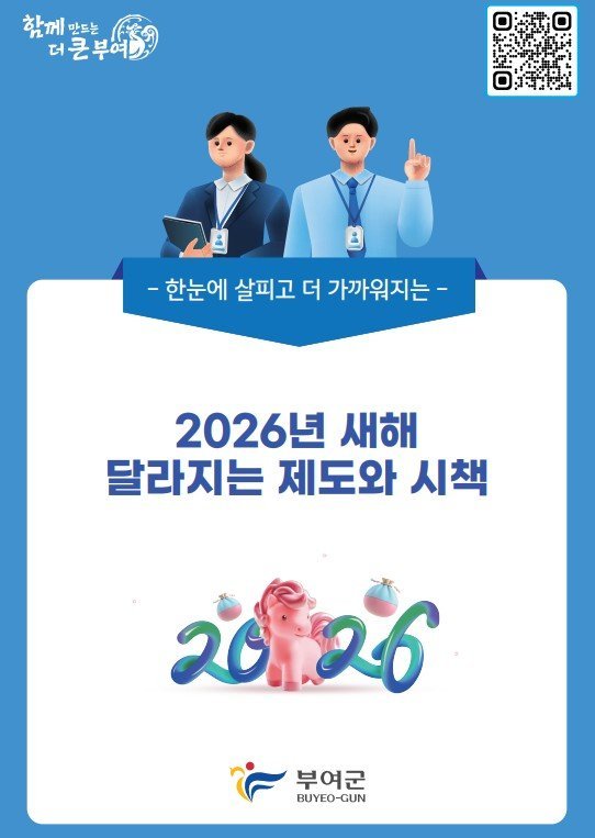 한편, ‘2026년 달라지는 제도·시책’에 대한 자세한 사항은 부여군 누리집 E-book과 사회관계망서비스 등을 통해 확인할 수 있다.