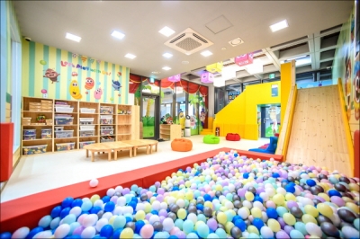 아이들이 신나게 타고 놀 수 있는 2층 미끄럼틀과 안전을 위한 볼풀, 아이 엄마를 위한 편안한 수유실, 라바키즈 캐릭터 어린이 세면실 등 아이들이 좋아하는 귀엽고 아기자기한 라바키즈 캐릭터 디자인으로 구성했다.