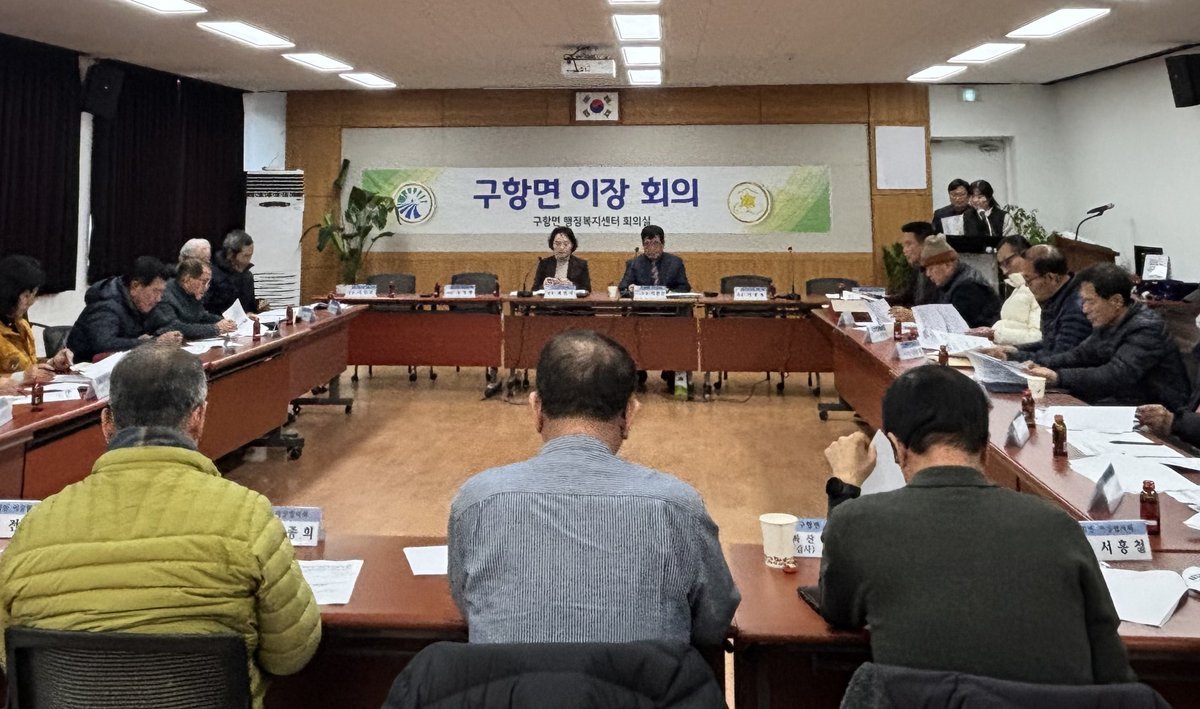 이날 회의에서는 배미자 구항면장을 비롯한 각 마을 이장 등이 참석하여 새해 인사를 나누며 한 해 동안의 건강과 마을의 안녕을 기원하고, 주민 화합과 지역 발전을 위한 각오를 다지는 시간을 가졌다.
