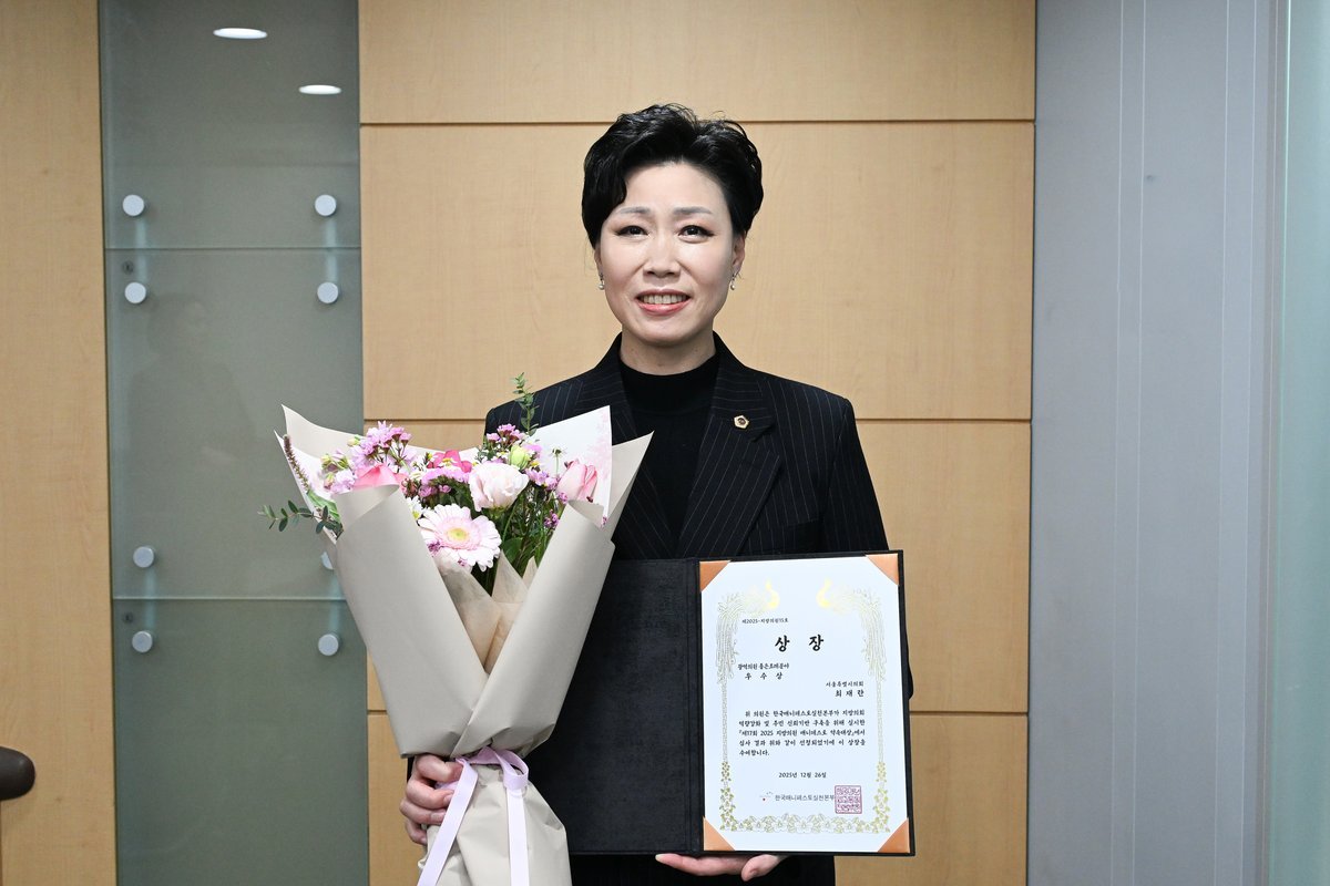 [충청뉴스큐] 서울시의회 교육위원회 최재란 의원이 한국매니페스토실천본부가 주최한 제17회 2025 지방의원 매니페스토 약속대상에서 좋은조례 분야 우수상을 수상했다.