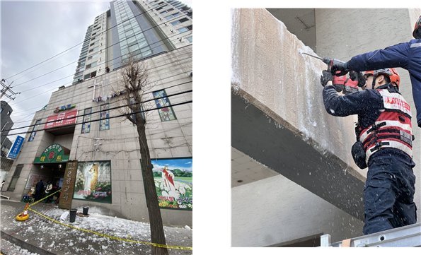 본부는 당분간 추위가 반복될 것으로 예상되는 만큼 시민에게 건물 외벽에 고드름 발생 여부를 반드시 확인하고, 높은 곳에 생긴 대형 고드름은 무리하게 제거하지 말고 119로 신고해 주시길 당부했다.