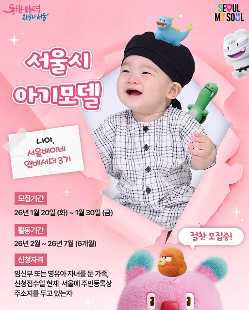 서울시는 ‘서울베이비앰배서더’ 3기 가족을 1월 20일부터 30일까지 11일간 모집한다고 밝혔다.