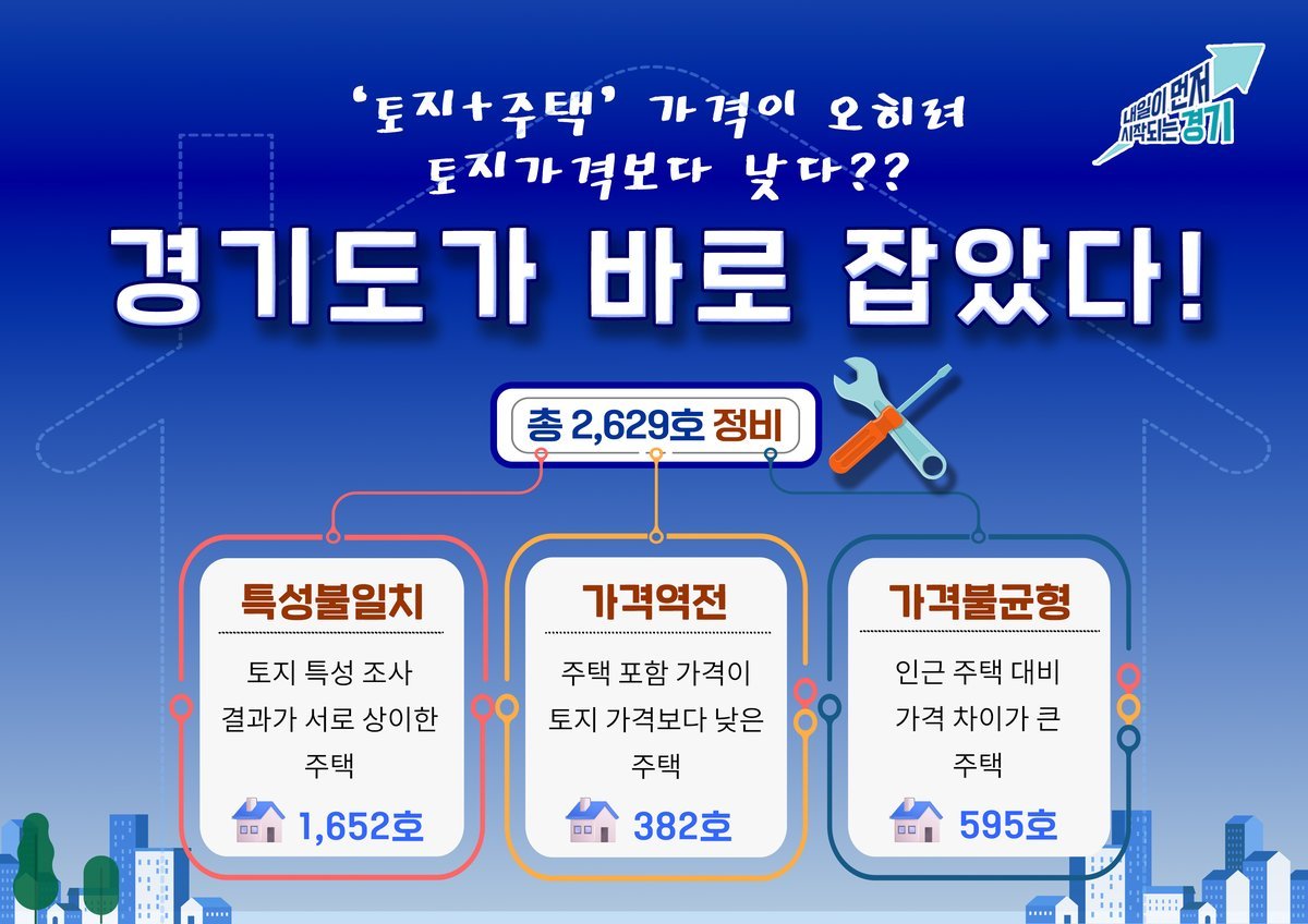 정비 대상은 △토지 특성 조사 결과가 서로 달랐던 ‘특성불일치’ 주택 1,652호 △토지가격보다 주택 포함 가격이 더 낮게 산정된 ‘가격역전’ 주택 382호 △인근 주택과 비교해 가격 격차가 컸던 ‘가격불균형’ 주택 595호 등이다.