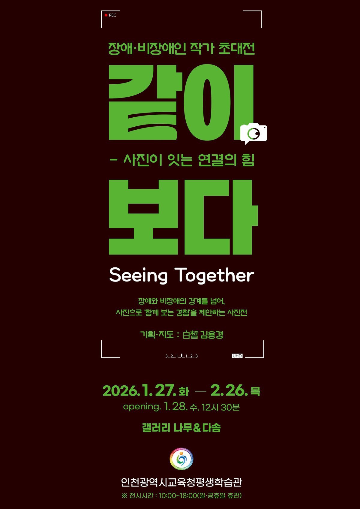 [충청뉴스큐] 인천광역시교육청평생학습관은 인천 시민을 대상으로 2층 갤러리 나무와 다솜에서 ‘같이, 보다 장애인 작가 초대전’을 개최한다.