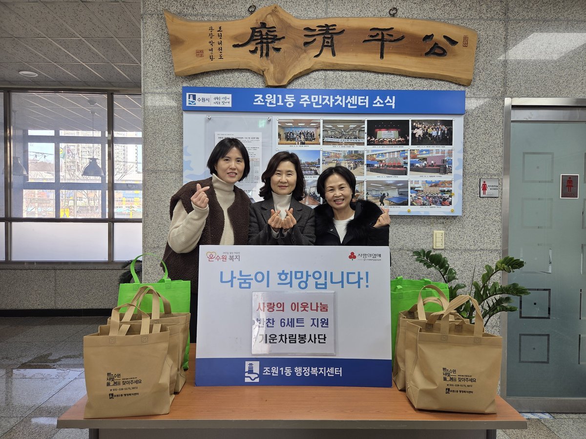 윤현섭 조원 1 동장은 “기운차림봉사단이 오랜 기간 꾸준히 실천해 온 나눔 활동이 지역사회에 큰 힘이 되고 있다”며 “앞으로도 민관 협력을 통해 취약계층 돌봄과 복지 사각지대 해소에 최선을 다하겠다”고 전했다.