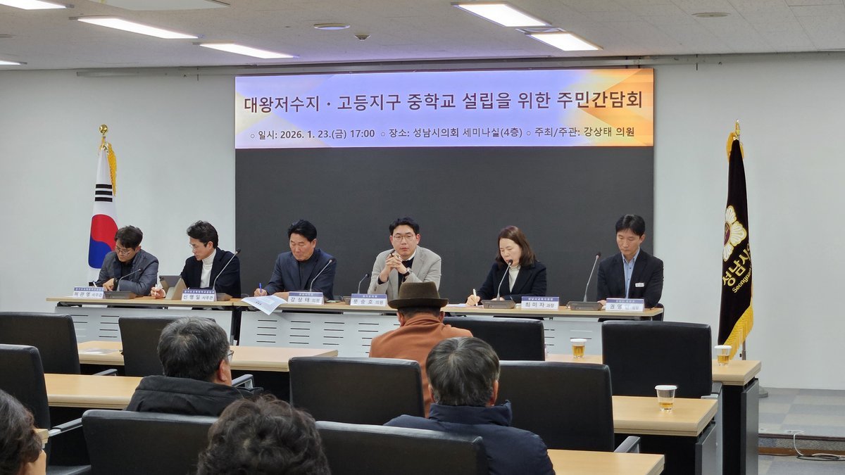 [충청뉴스큐] 경기도의회 교육행정위원회 문승호 의원이 지난 1월 23일 성남시의회에서 진행된 '대왕저수지·고등지구 중학교 설립 주민 간담회'를 통해 집행부에 고등지구 중학교·대왕저수지 수변공원 설립에 대한 지역 주민들의 의지를 전달하고 신속한 추진을 주문했다.