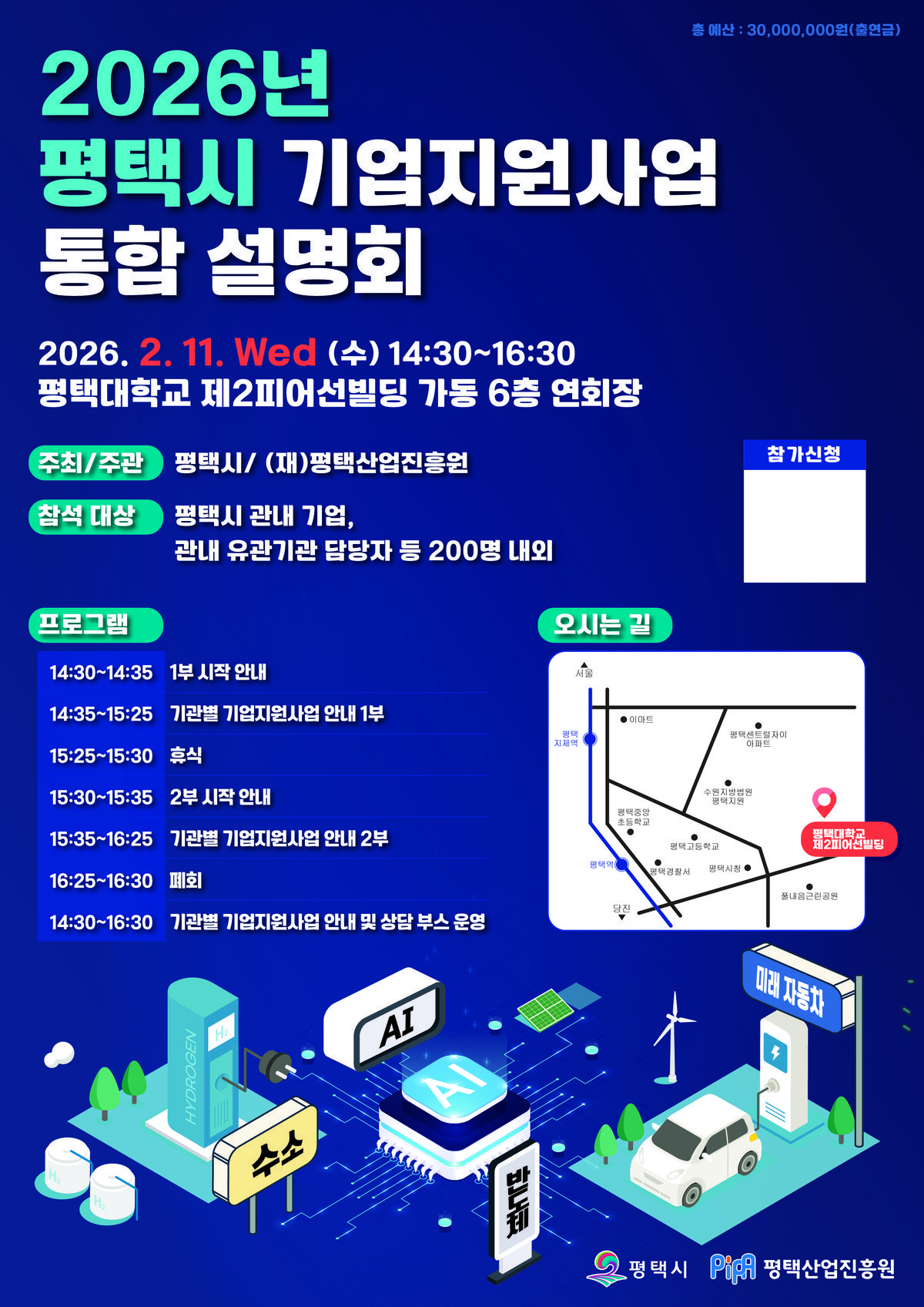 [충청뉴스큐] 평택시가 평택산업진흥원과 함께 오는 2월 11일 평택대학교 제2피어선빌딩 6층 대강당에서 ‘평택 중소기업 지원사업 설명회’를 개최한다.